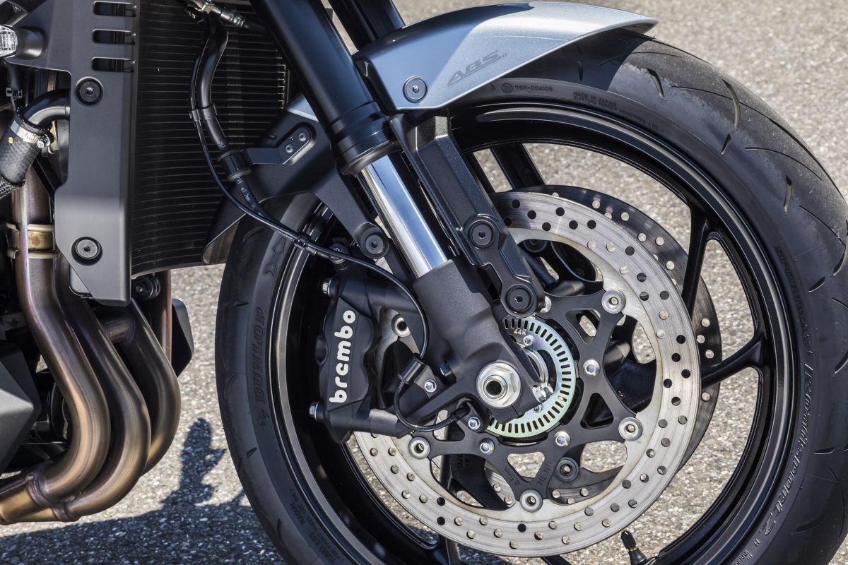 フロントブレーキはイタリアのブレーキメーカー・ブレンボ製を装備。もちろんABSも搭載する。制動力に関して不安要素は一切なし。