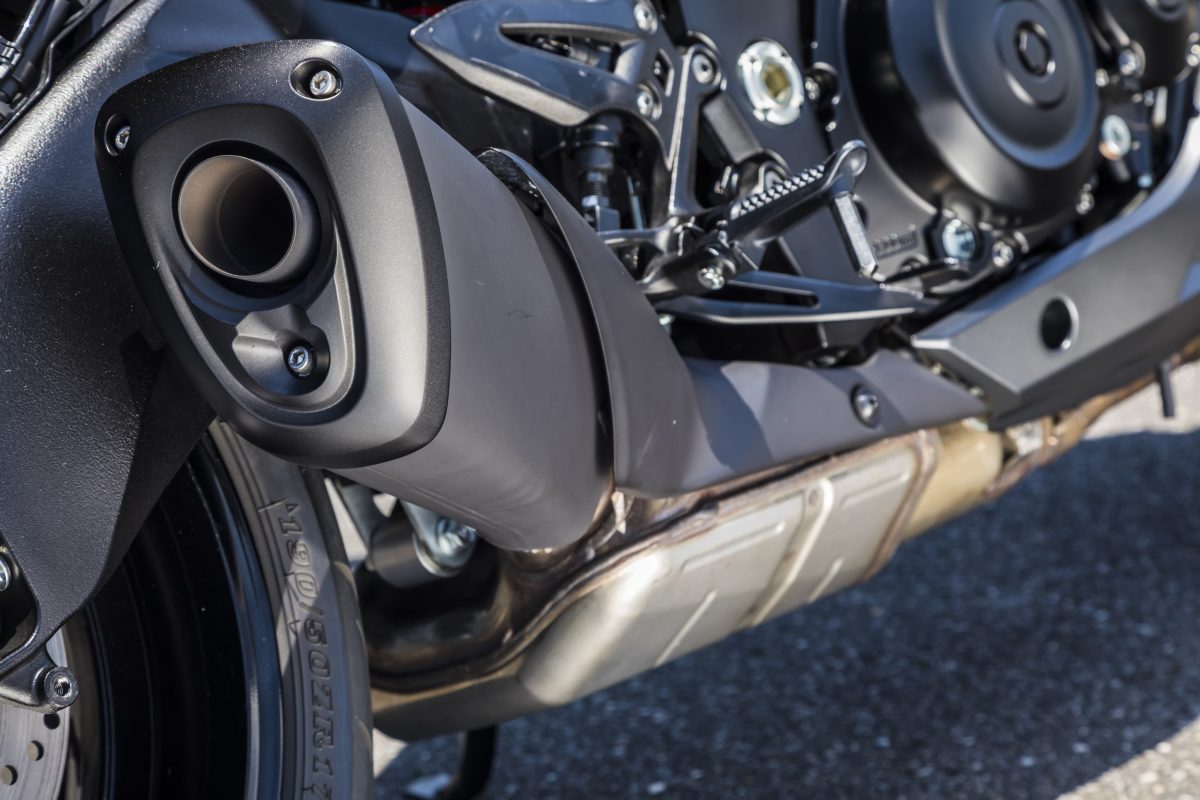 斜め後ろから見ると、テールカウルより飛び出したタイヤの視覚効果からか、今にも飛びかかりそうな猛獣のような雰囲気。男らしくも先鋭的で、個人的にはかなり好みだ。