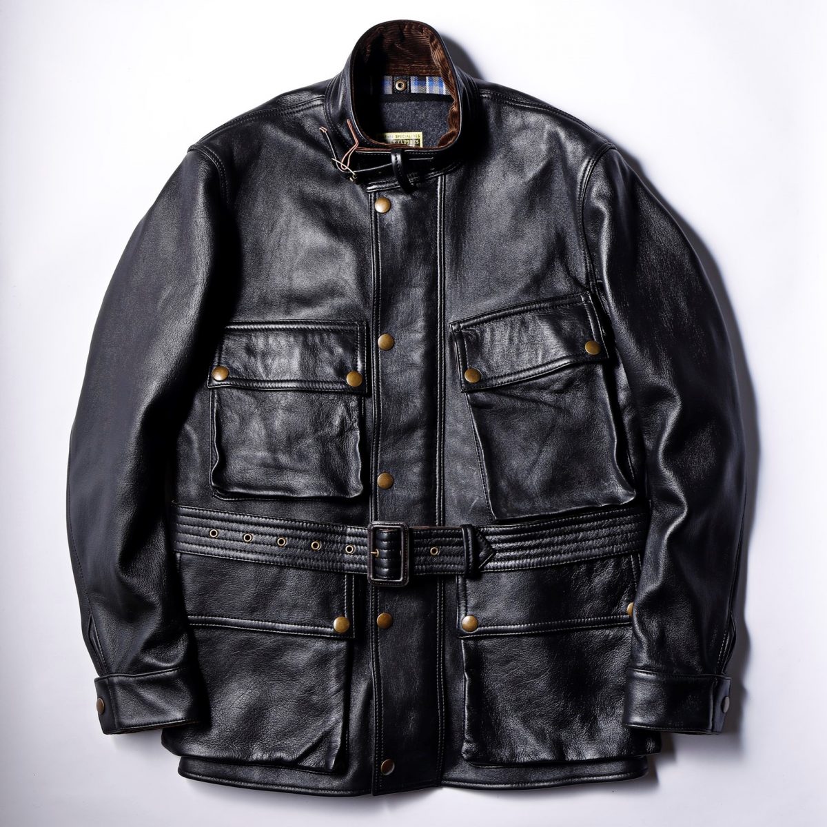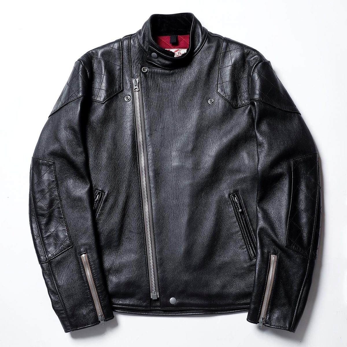英国の’60〜’70年代スタイルのディテールを踏襲し、当時の雰囲気を色濃くのこしたままモダナイズさせたシングルライダース。シンプルなデザインなので着こなしにも取り入れやすく大人っぽくも着られる。16万5000円〜