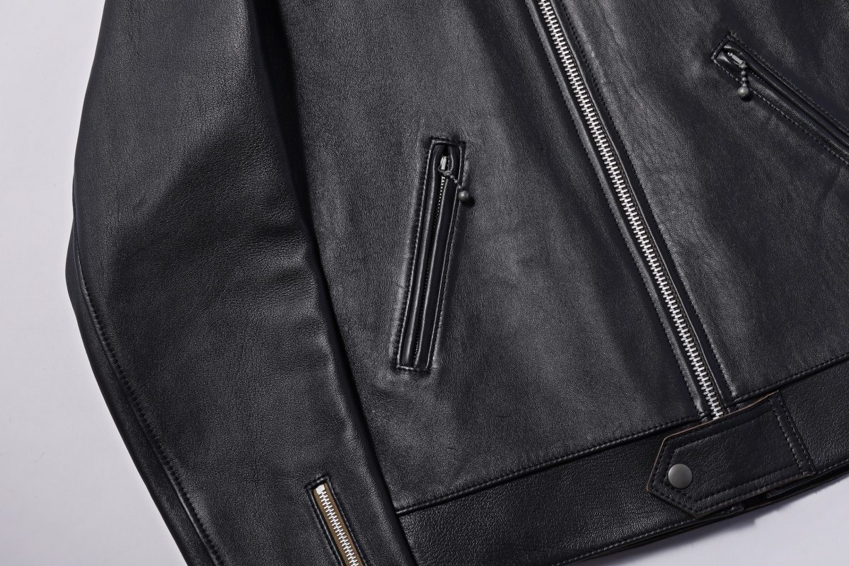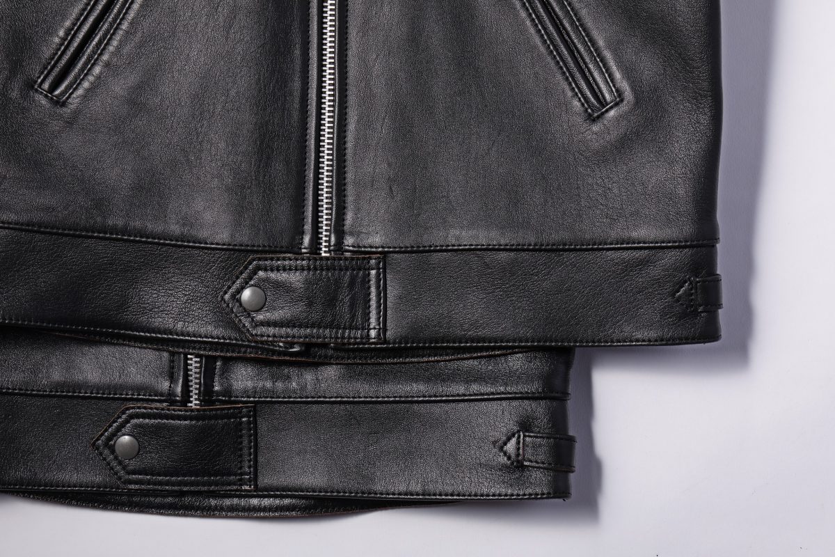 ベースモデルを選んだら、ジャケットの表情を決定づける3種類の革からチョイスしよう。初めは大きな差はないものの、着こむほどにエイジングに差がまれるため、使い方や自分好みの経年変化を考慮しながら選びたい。