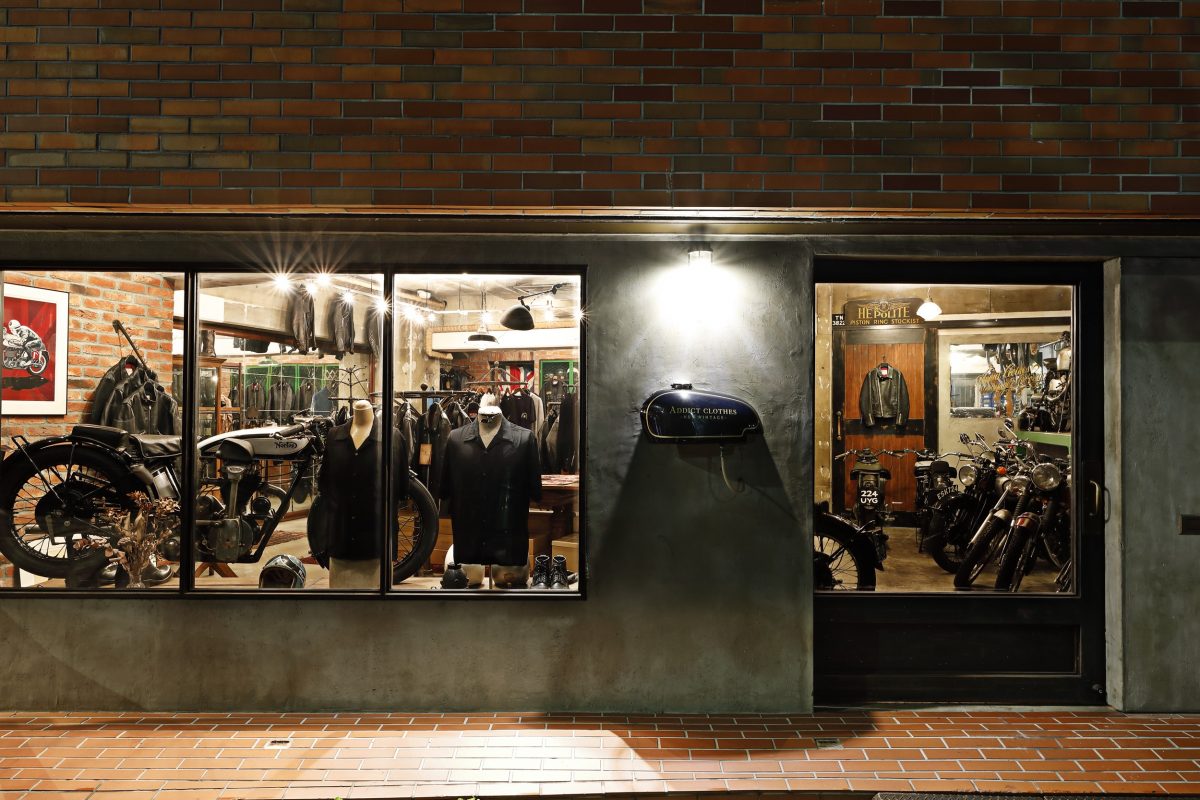 英国の伝統的なスタイルを継承したバイカージャケットをレザーで再構築したアディクトクローズの代表作。普段の着こなしにも対応するデザインで、着脱式のウールライナーも付属するため防寒着としても重宝する。22万円〜