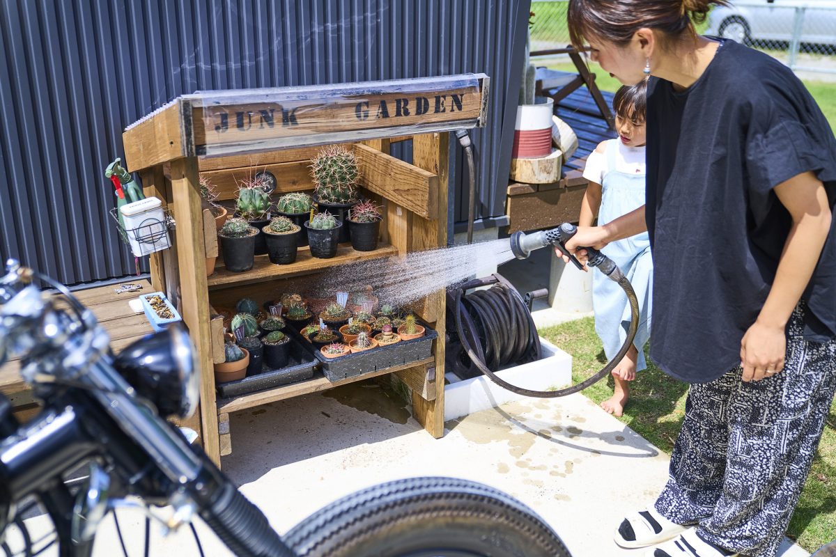 聞けば、インスタグラムでBESSオーナーの家を見て、「BESSとサボテンって合いそうだな」と思い、栽培を始めたのだとか。庭には、真里栄さんが手塩にかけたサボテンがたくさん植えられ、毎日、水やりを楽しんでいる。