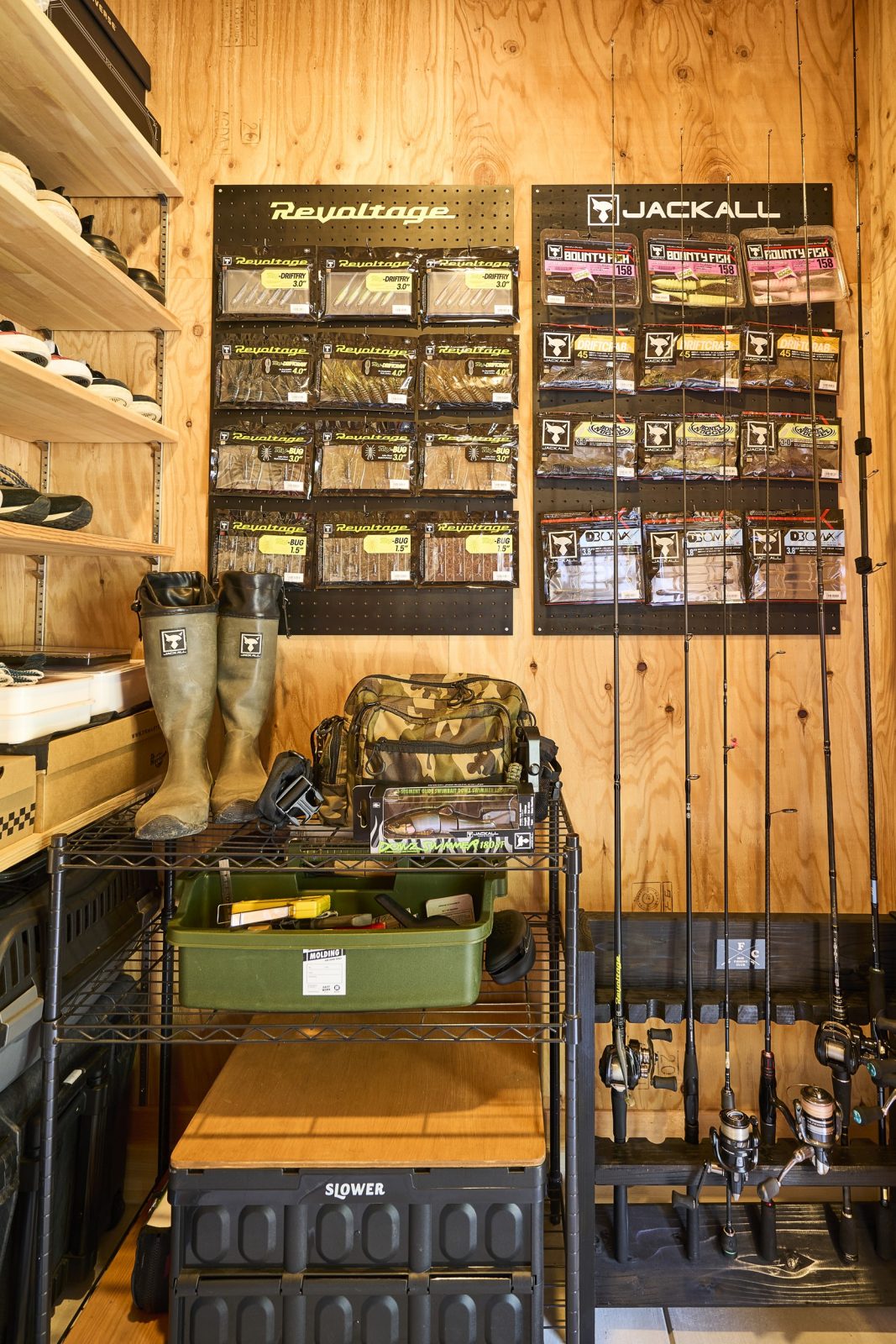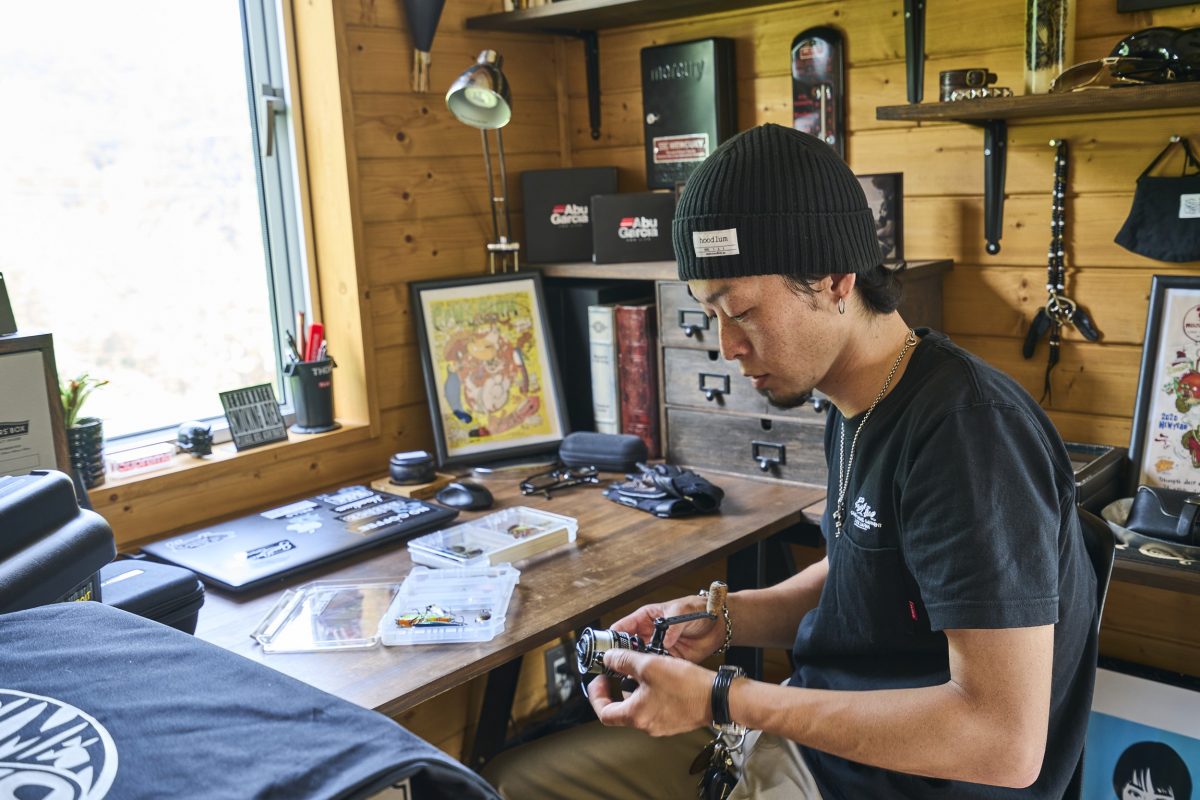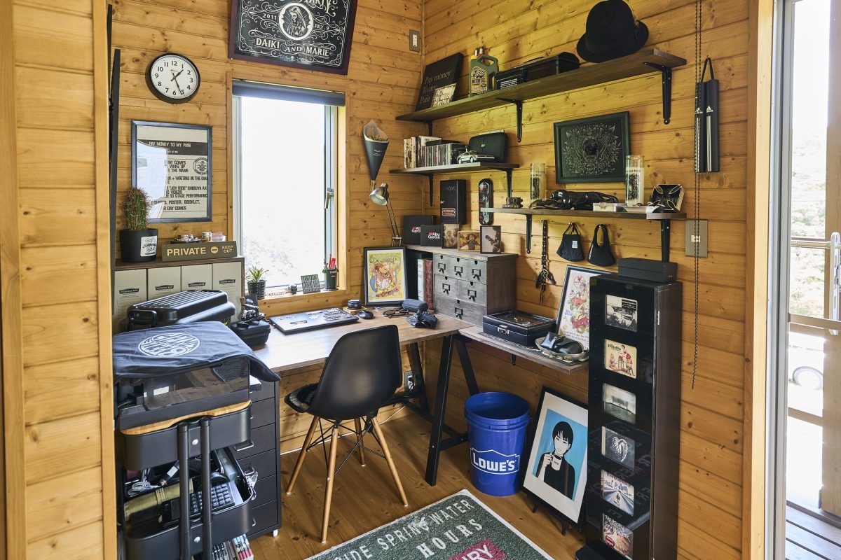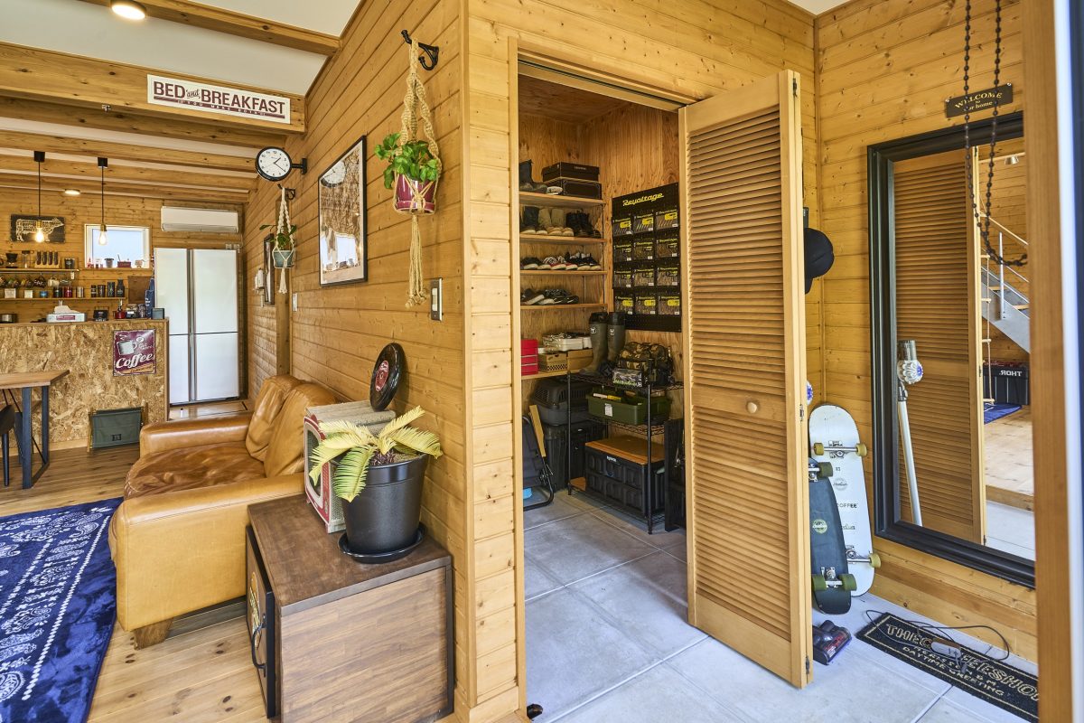 1階の玄関奥の納戸には、大樹さんの趣味である釣りの道具がずらりと並び、家の中のそこかしこに、奥様である真里栄さんの趣味であるサボテンが、ディスプレイされている。