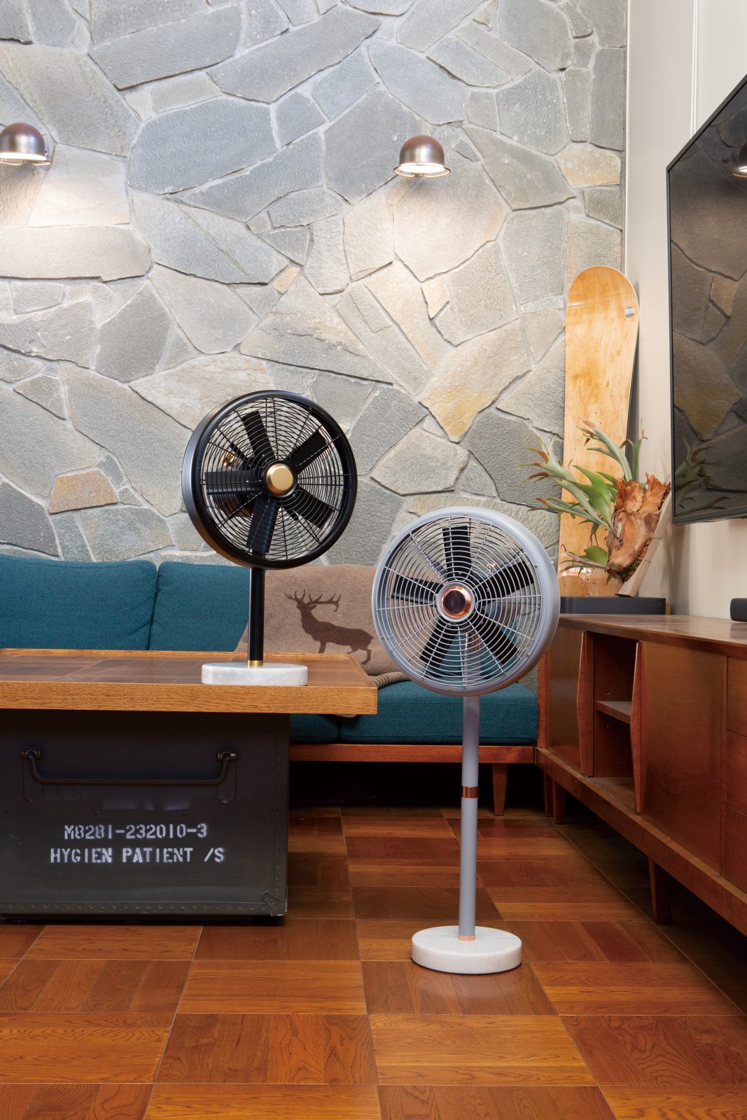 また、支柱のパーツを脱着することで、フロアファンとしてもテーブルファンとしても使用することができる。無段階風量調節で柔らかい風から強い風まで設定可能。高級感あるインテリア空間を快適に演出してくれるだろう。