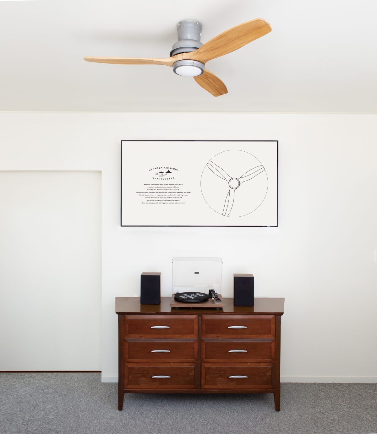 「ハモサ」のインテリアアイテムのなかでも特に人気を集めているのがシーリングファン。西海岸風の室内にピッタリな、おしゃれでシンプルなデザインが複数ラインナップしているのが人気のヒミツ。