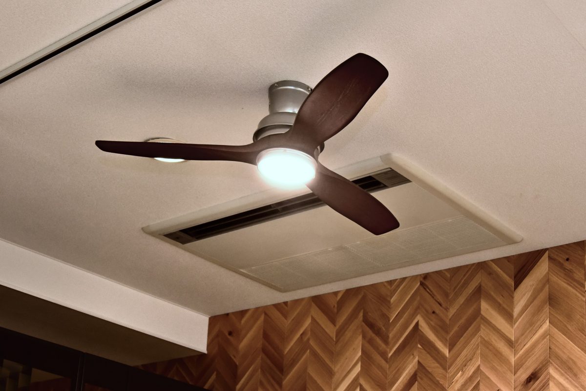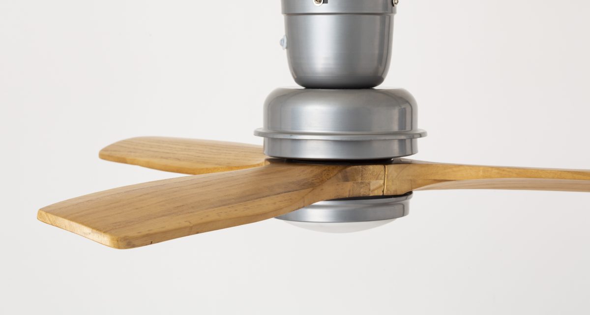 こちらは6種類目として登場したバルシーリングファン。Lightnig編集部で採用しているのと同じものだ。なんといっても、全長を短くしたデザインが特徴。天井高が高いところではなくても使うことができ、つける場所のバリエーションを増やすことができる。羽がウッドなのも柔らかい印象にとなり、ウッドとアイアンという異素材を掛け合わせた他にないデザインだ。