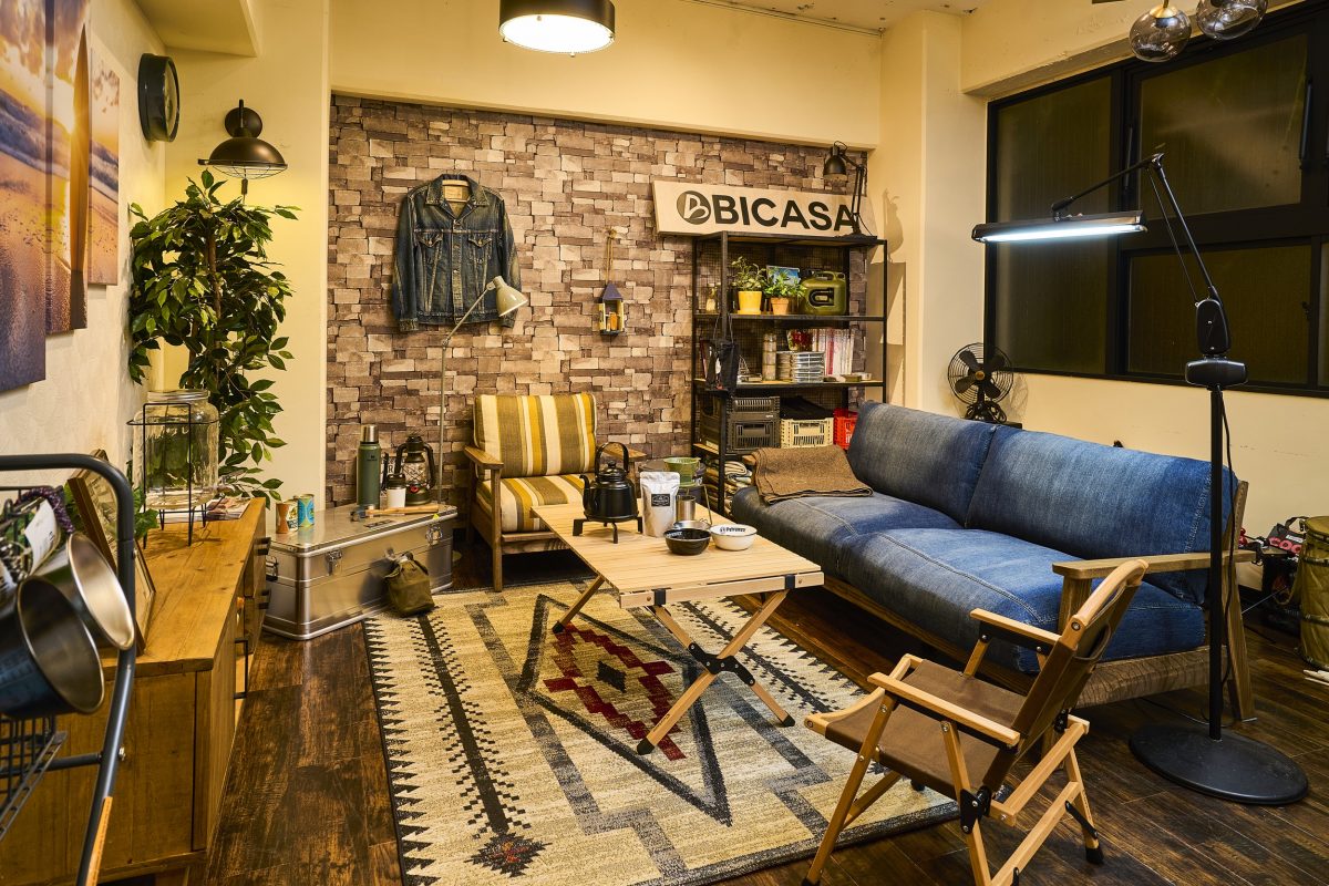 八王子を拠点に、カリフォルニアスタイルの家具やインテリアをデザイン・販売し、空間のトータルコーディネイトまでも提案するビカーサ。これまでのスタイルに加えて、最近ではアウトドアスタイルにも力を入れており、自社ブランドのビメイクスを通して、インとアウトがつながるようなインテリアや空間作りもスタート。店内の一角にはアウトドアをテーマにしたリビング空間やキャンプスタイルを展示。これらは実際にスタッフが毎週のようにアウトドアを体験して生まれた発想で、その上で何が必要でどんなものを提案すべきかを考え尽くされたものだといえる。安易にアウトドアをテーマにするのではなく、提案する側もテーマに合わせて楽しんでいるのがビカーサ流なのだ。