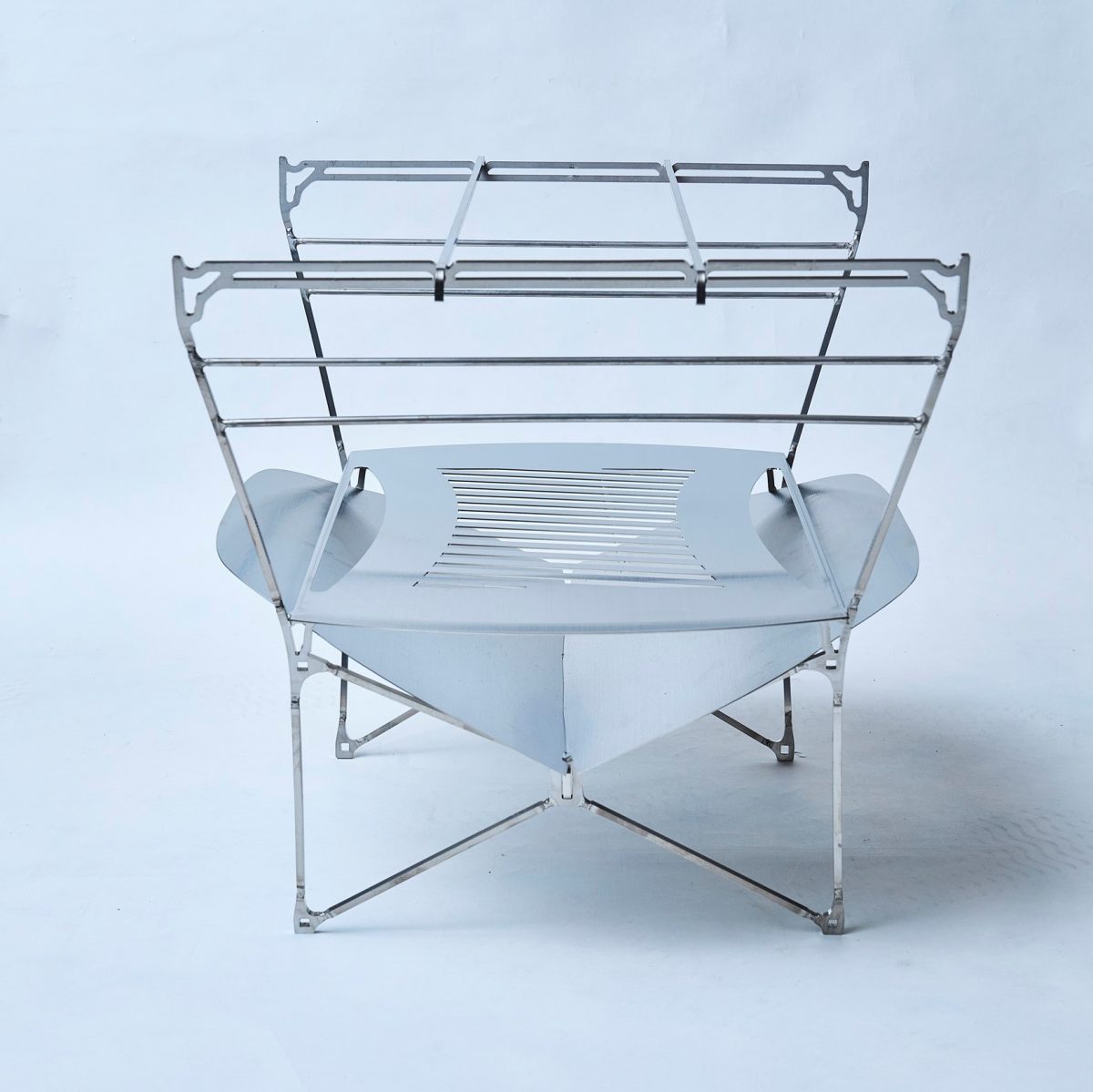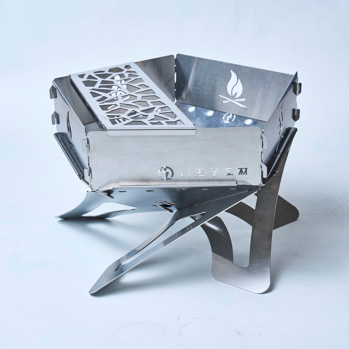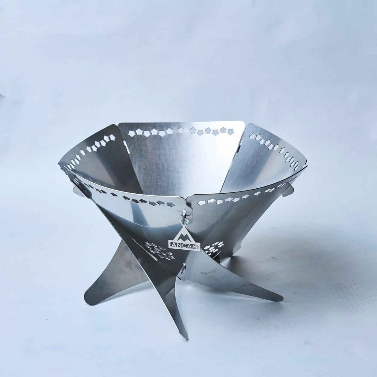 5枚のプレートと1つの鍵で組み合わせる焚き火台。逆さにしても崩れたりしないので、灰捨ても簡単。2万9480円