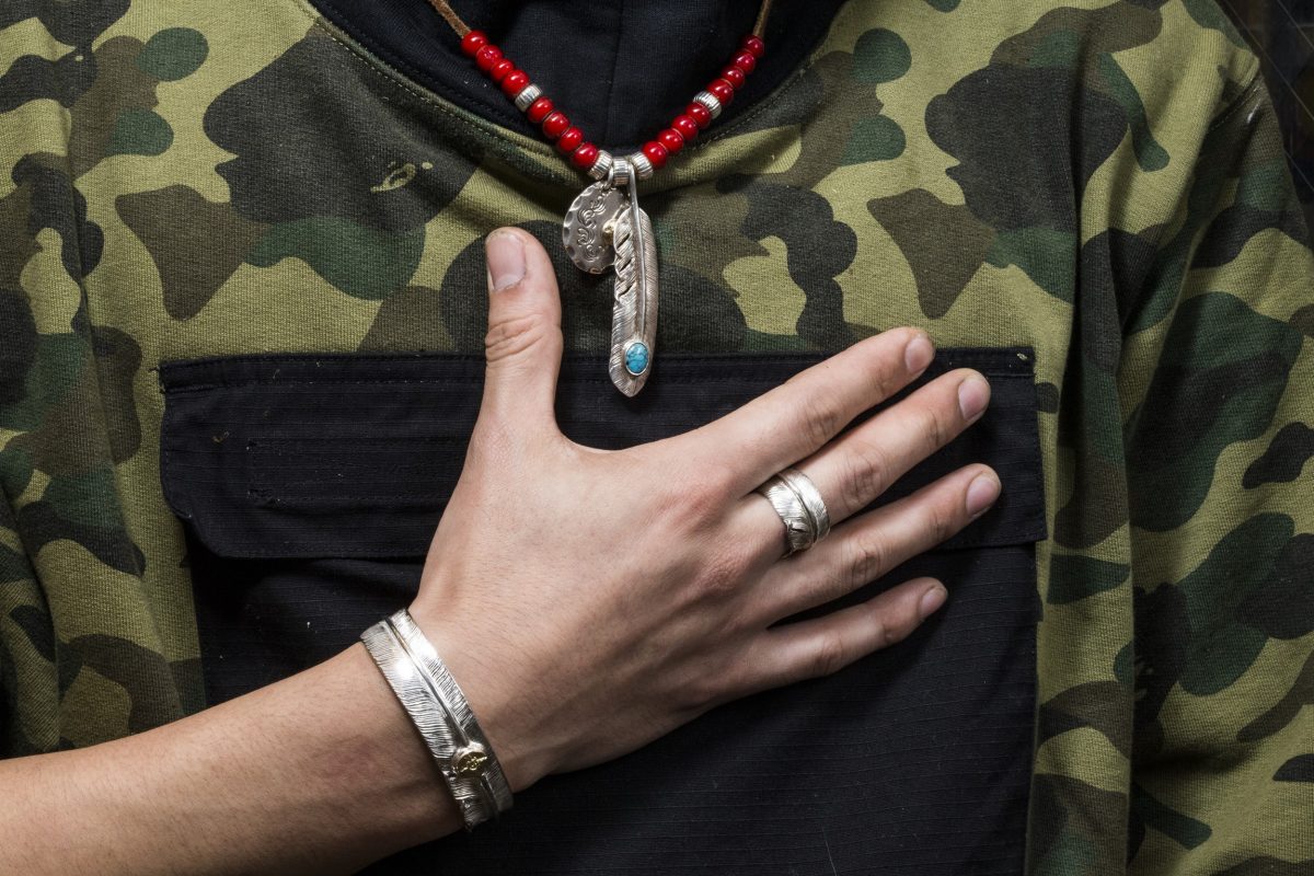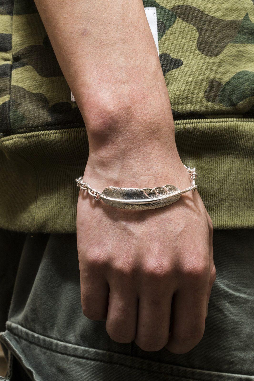 スタイリングを意識したいのであれば、ブレスレット、ペンダント、リングを、フェザーやイーグルなど統一したデザインで着用してみるのも良い。統一感のあるさりげないコーディネイトがシルバーアクセサリーをより強調してくれるに違いない。