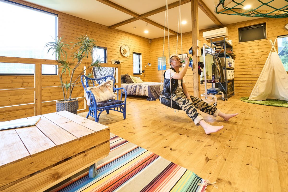 数あるBESSのラインナップの中で、最も自由度の高い家がこちらのワンダーボイド。だってこのモデル、2階にいたっては、何の仕切りもないのだ。この家の楽しみ方は、何と言っても「ホームパーティ」。広い土間空間に酒と料理を並べて、思い思いに楽しむスタイルで、家飲みを楽しむ。外出もままならないこの状況だからこそ、家での時間を精一杯楽しみたい。吹き抜けで1階と2階が繋がっているので、音楽を掛ければ家中にメロディが流れ出る。こんな楽しい家、他にある?