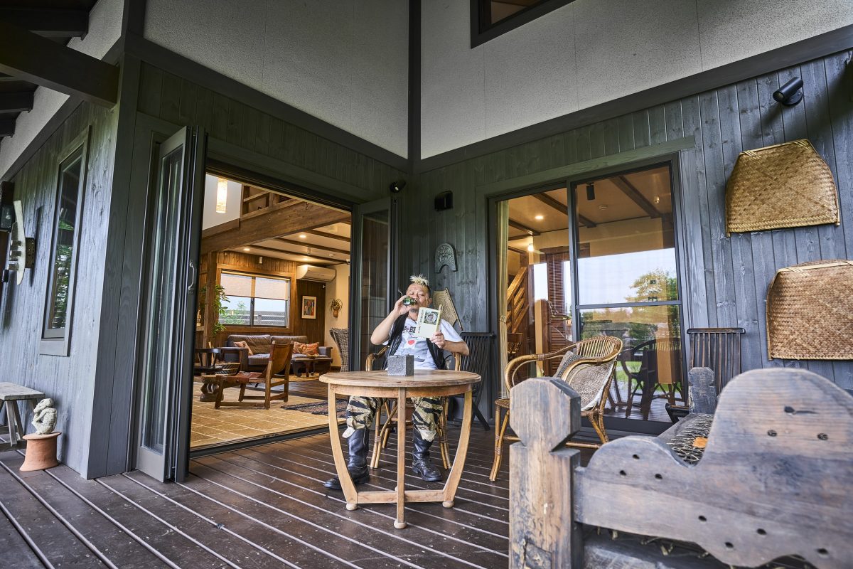 G-LOGと言えば、広々とした超ベランダ空間『NIDO(ニド)』。この贅沢な空間をどう使いこなすか、が鍵となる。モヒカン小川のおすすめはブーツのお手入れ。気持ちのいい風が吹き抜け、贅沢な時間が流れていく。