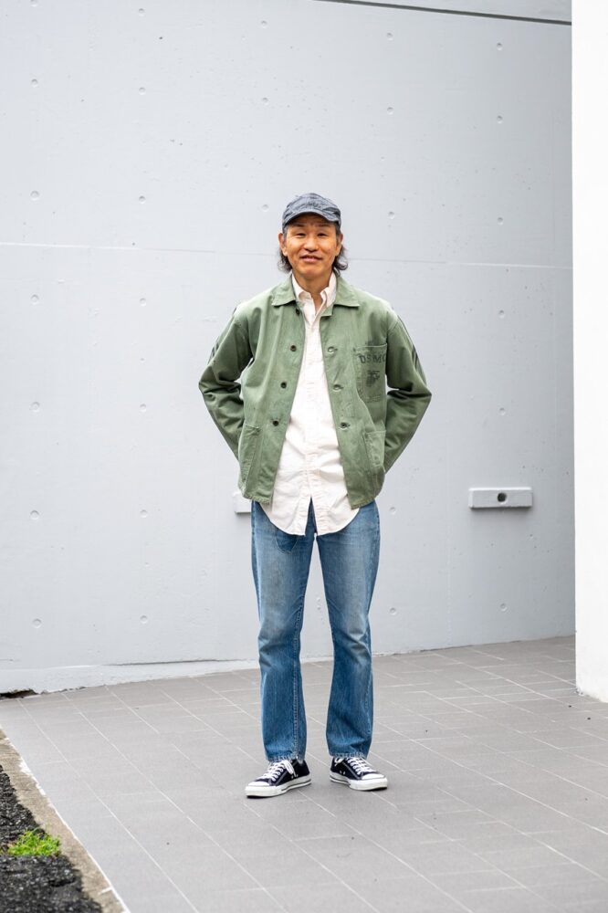 テーマは” 大人ヴィンテージ”。’70sのブルックスブラザーズの6個ボタンダウンシャツや、’40sのタイプP-41 HBTジャケット、リーバイス505のビッグEなど、シンプルながら動きやすいサイズセレクトも含め、大人ならではのこだわりが随所に見える。