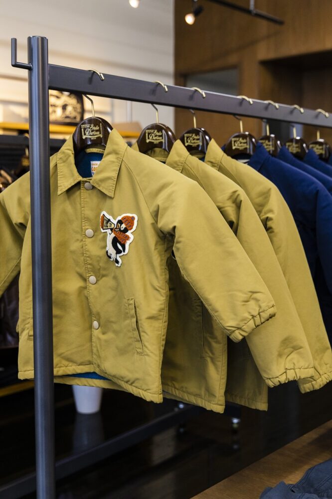 整然とした店内。ステュディオ・ダ・ルチザンを中心に、オルゲイユやエアロレザーなどがラインナップされている。新しいキッズブランドも充実おり、親子でデニムコーデを楽しめるのも嬉しいところ。