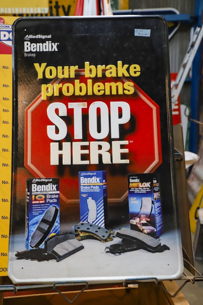1924年創立のブレーキメーカー、ベンディックスの商品紹介の看板。1万4800円