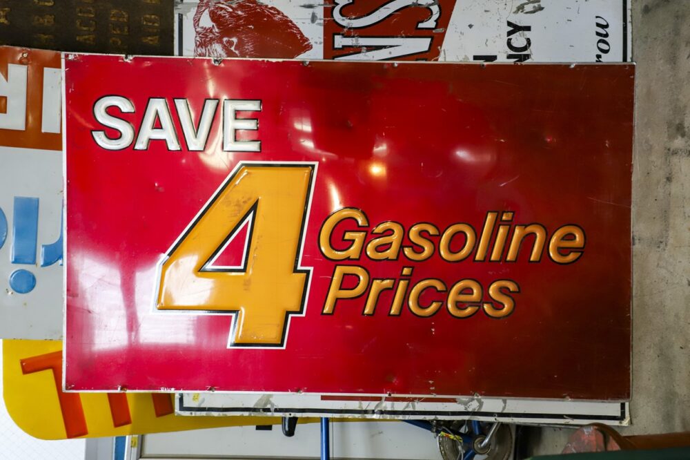 ガソリンスタンドに見られるガソリンがお得なことを知らせる看板。3万6800円