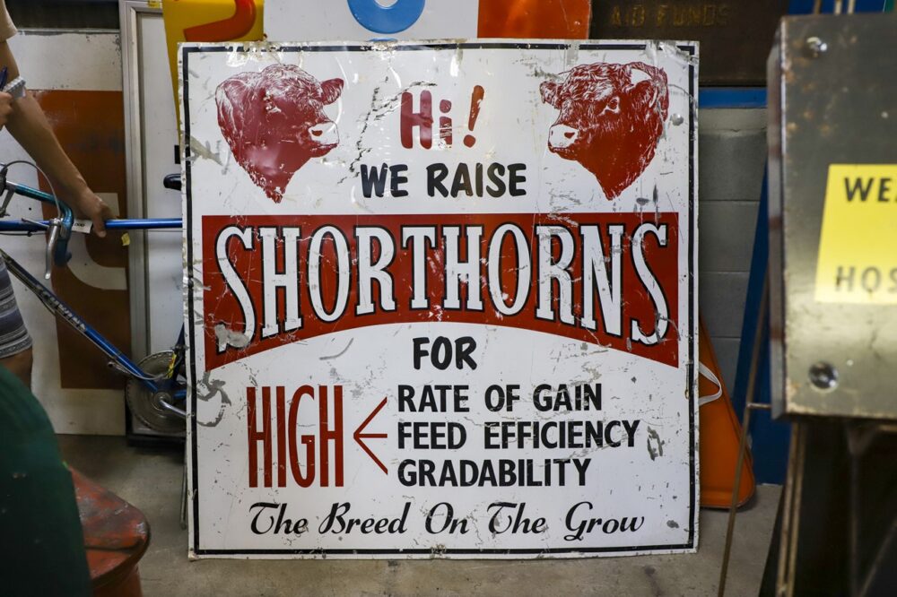 詳細は不明だが恐らく食肉系の企業のスチール製看板。9万8000円