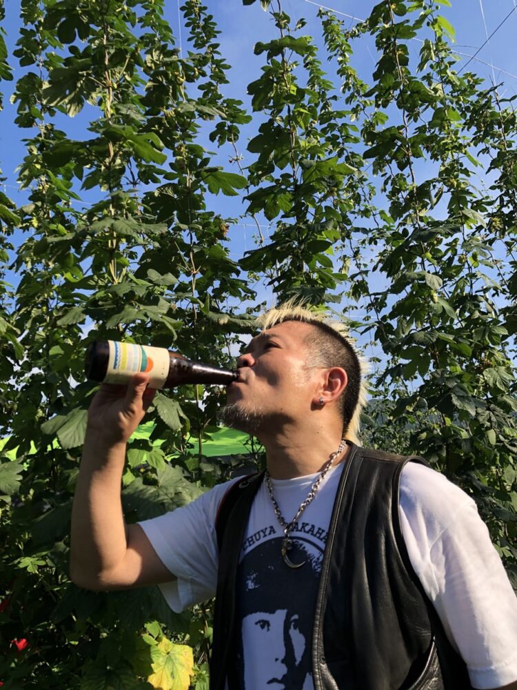 いままで数えきれないほどビールを飲んできたモヒカン小川だが、ホップ畑でビールを飲むのは生まれて初めて。「ビール好きとして、本当に貴重な経験をさせてもらいました!」