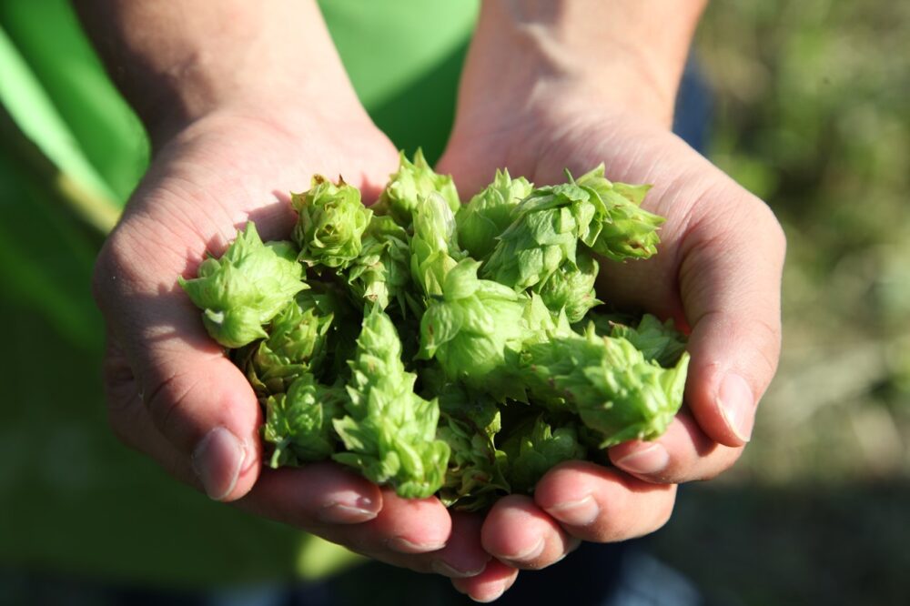 松ぼっくりのような形をしているホップ。このホップがビールに苦みと香りを与え、泡の安定性を高めるのだ。