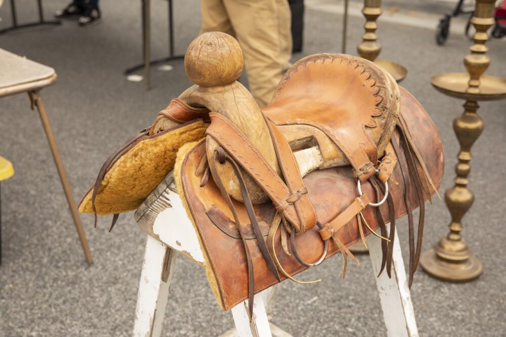 かつてのウエスタン映画で使われていたというサドルは200ドル。時代を経たモノだけが持つ深い味わいは魅力的。レザー好きならばこういう大物はどう?