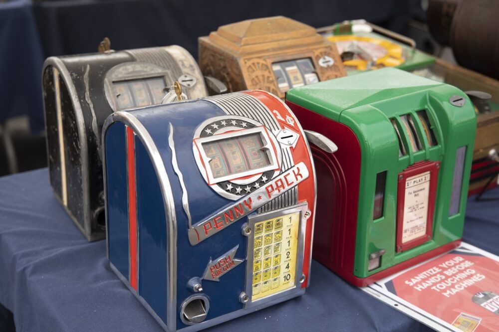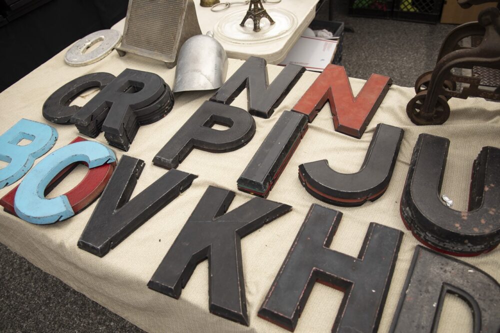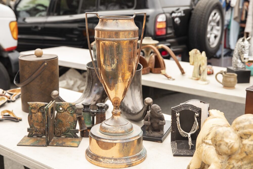 金属系の一見ガラクタだらけのように見えるけど、これが宝の山に見える人もいるというのがアンティークの世界。中央にある1941年のトロフィは200ドル。以前に比べて高くなったね。