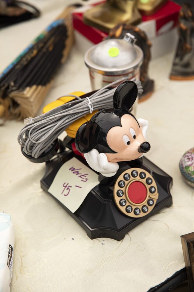 昔の電話は使用することができないモノも多いけれど、そのフォルムやデザインでインテリアにもなる。これはミッキーマウスなのでなおさら。しかも稼働品で45ドルだ。