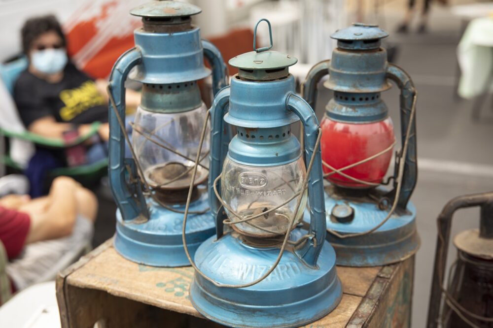 デイツ社のオールドランタンはガラスも完品でまだまだ使えるクオリティ。キャンプにオールドランタンを持っていけば、熟練キャンパーも一目置いてくれるはず。各40ドル