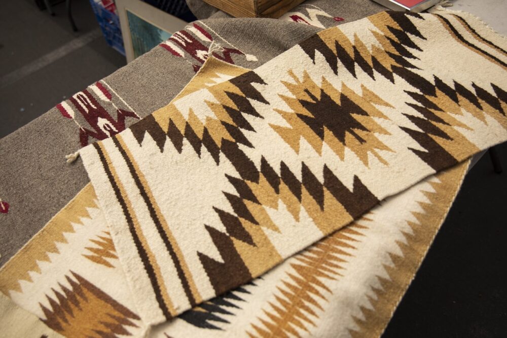 ナバホ系のラグは新旧、いろいろなデザインを多くのブースで見かける。これは50ドルで販売。