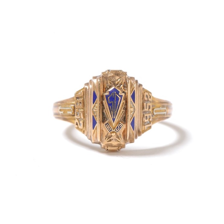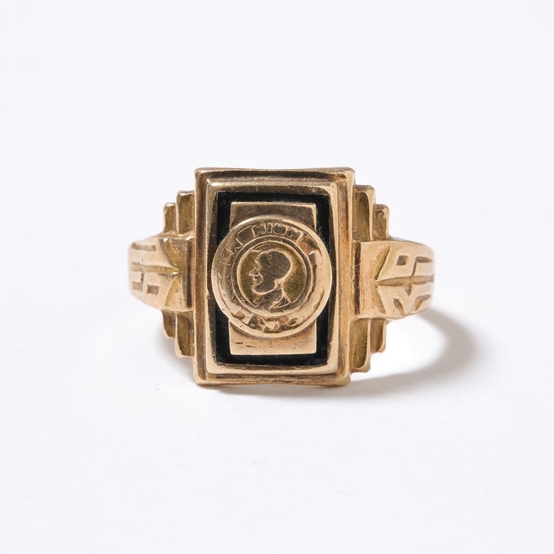 カレッジリングではなかなか出てこない1930年代の個体。後年と比べると華奢で繊細なデザイン。10金を使っている。3万8000円