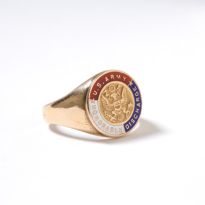 米国陸軍の退役軍人に贈られた記念リング。10金を使った贅沢な作りには感謝の意が込められている。トリコロールカラーが絶妙。13万円