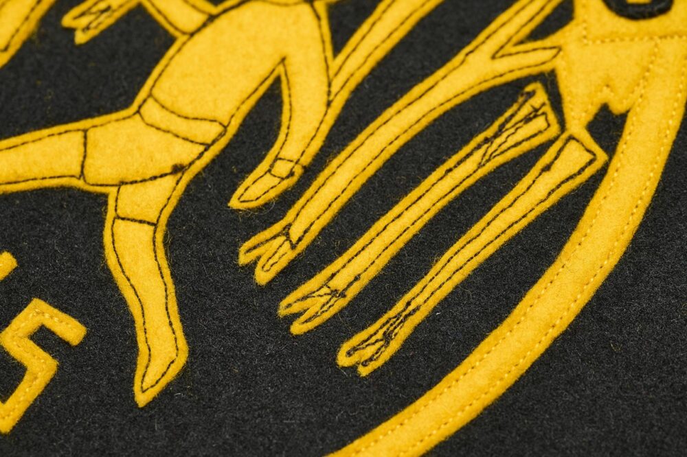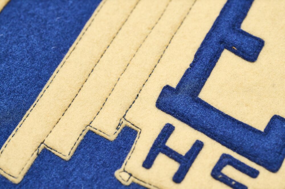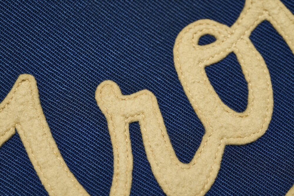その優れたデザイン性は、フェルトを使ったレタリングを見れば明らか。1920年代の各学校のフェルトバナーは、その代表格だ。このようなレタリングはウールニットにも採用され、それが後にいわゆるカレッジプリントのスウェットシャツの礎になった。また、チームジャケットにも当初はフェルトレターが使われたが、’30年代頃からチェーン刺繍を使ってさらに凝ったデザインへと発展した。