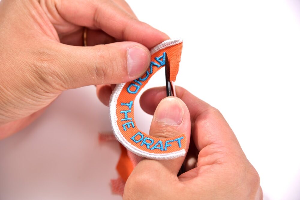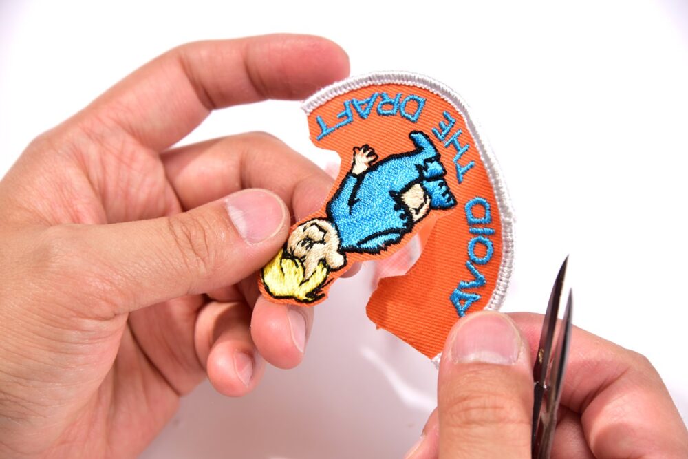 丸いワッペンが重なるとイマイチなので、はさみでカットすることに!
