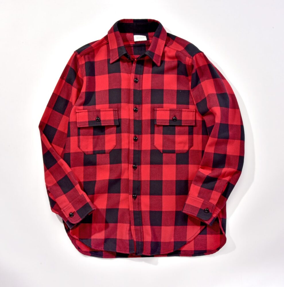 アイコンであるウールの長方形バッファローチェック生地をコットンで再構築。ボタンや前立て裏の別布処理、脇の環縫い縫製などの作り込みも要チェックだ。2万5300円