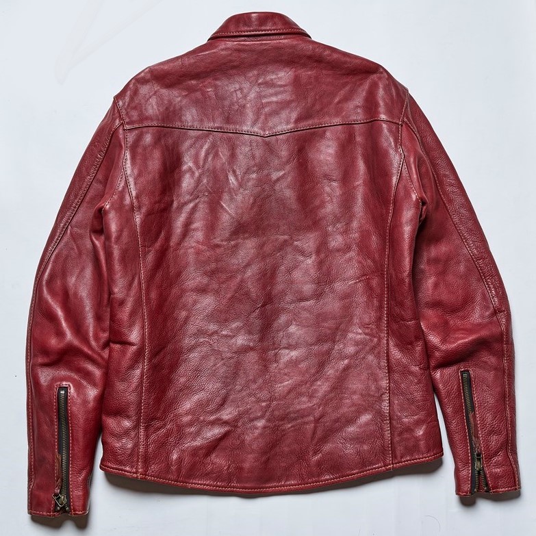 A-1初参戦でファイナリストに勝ち上がった野島さん。皺が全体に走り着用感のあるバーガンディは、他の色とは違った迫力と優美さを放っている。褪色のムラ感もポイント高し。