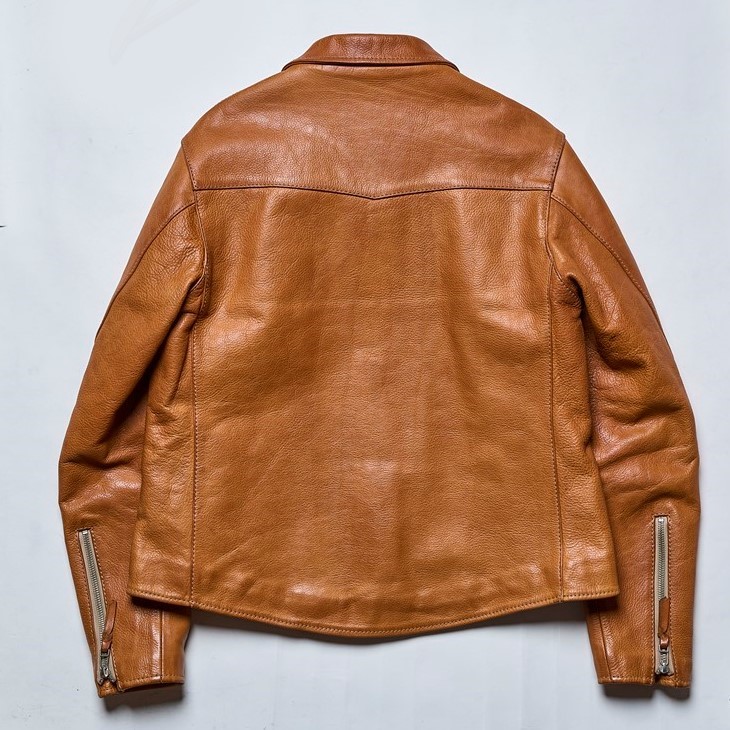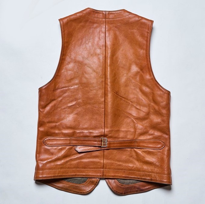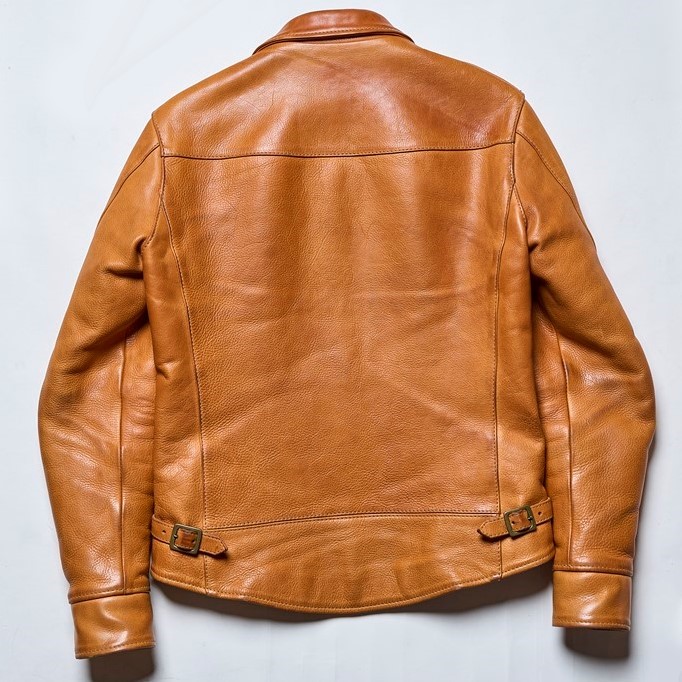 ムラ感がありながらも変な汚れがなく、飴色が美しい藤本さんのWS02。まだ2年しか着用していないというから驚きだ。バイクに乗る藤本さんならではのスピードエイジング。