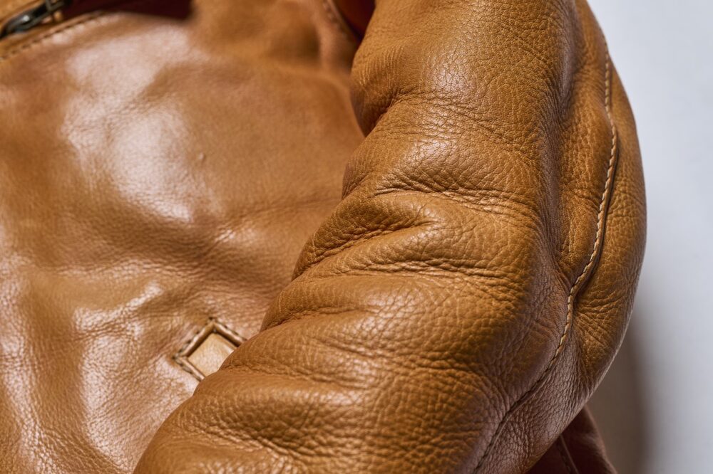 着用3年の林さんのJS02は2トーンの特別仕様。襟元など、まだまだエイジングの旅の途上ではあるが、腕のジャバラやボディの艶感は、さらなる進化を予感させる。