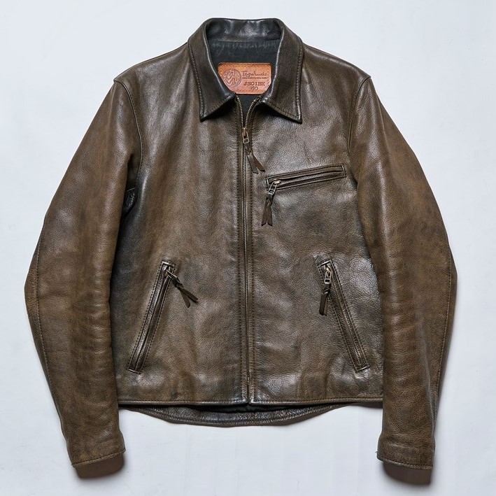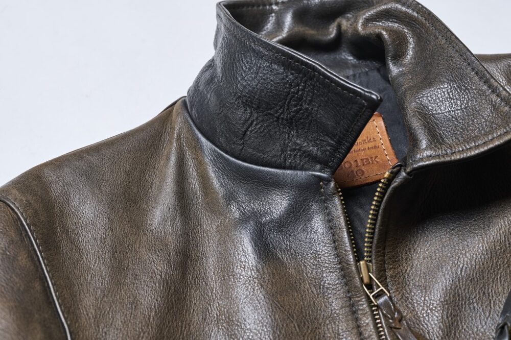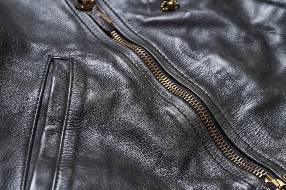 革ジャンには、その人の生き様や人生態度が現れる。植村さんのJS01は変な擦れもなく、9年かけて丁寧に育て上げたのが伝わってくる。黒のエイジングも味わい深いのだ。