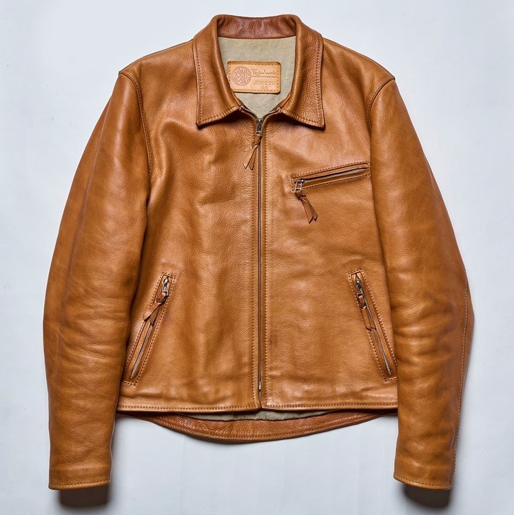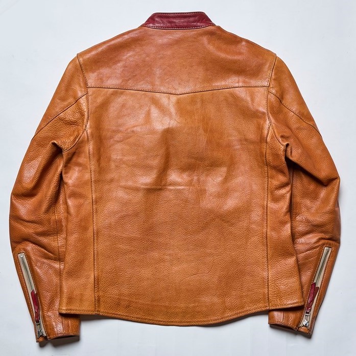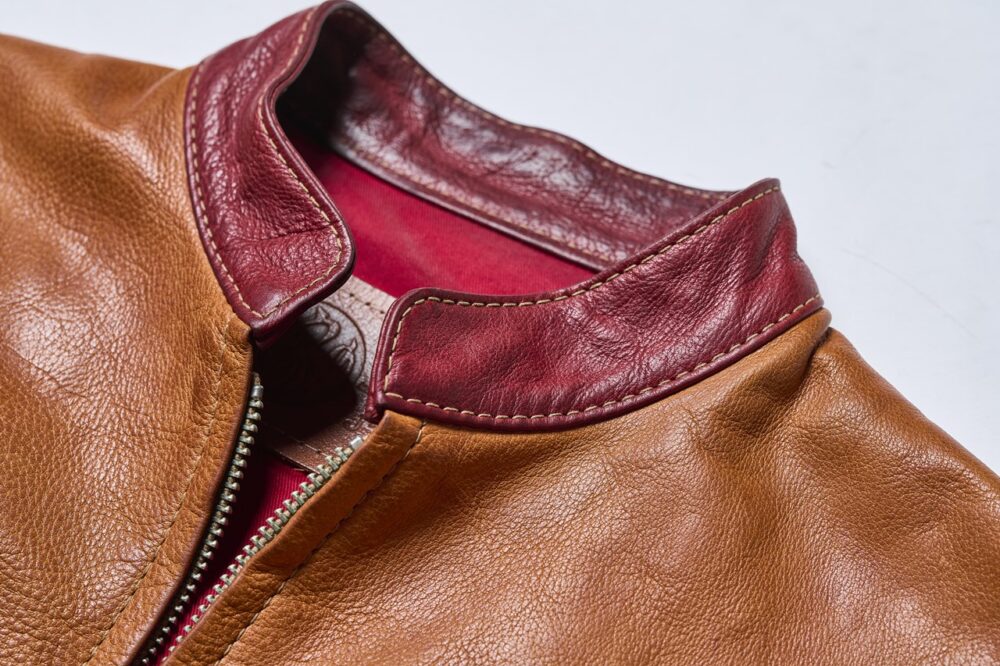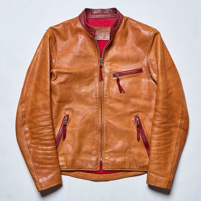 2012年ジャケット部門で3位入賞を果たした三橋さんは、今回、革を若干薄く漉いたJT01で参戦。首元の赤とボディのタンの変化のコントラストが独特の色気を醸し出している。