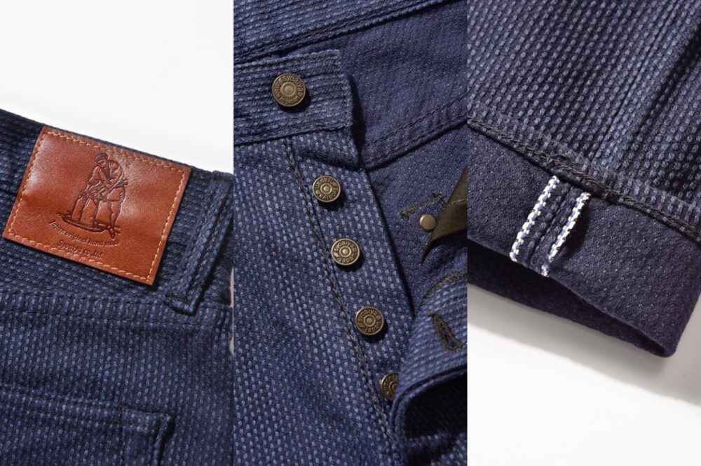 ジーンズを中心に日本のモノ作り背景で日本人が考えるアイテムをコンセプトにするピュアブルージャパンの強みと言えば、阿波正藍という日本古来の本藍染めの糸で織り上げたジーンズではないかと。ナチュラルインディゴで染めたデニムは珍しい存在ではないけれど、紡績から染色まで日本の背景で行い、それを通年生産しているブランドはここしかない。そのなかでもタテ、ヨコともに天然藍染めの糸を使って織り上げられた刺し子デニムなんて、ピュアブルージャパンならではのプロダクツ。それが特価で購入できるなんてうれしいじゃないの。