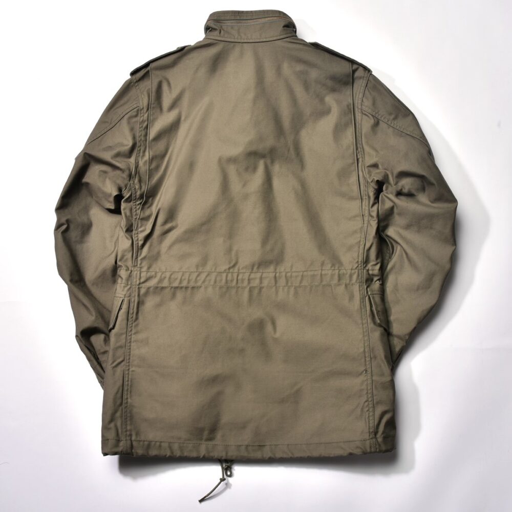 1965 年に米陸軍に制式採用されたことからM-65と呼ばれる。速乾性と耐久性、そして難燃性と吸湿性に兼ね備えたナイロンコットンを表地に使用。背中のアクションプリーツ、ウエストのドローストリング、袖口の折込式フラップなど機能性にも優れる。