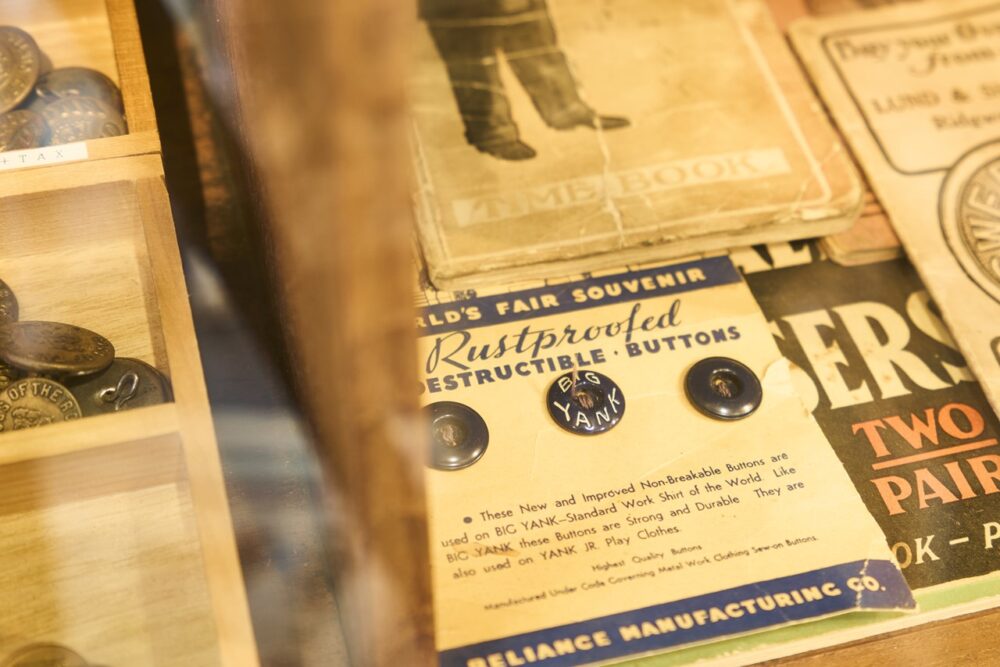オーナーの小菅さんは、ファッション業界では“ボタンおじさん”のニックネームでよく知られる人物。本業はボタンなどのパーツ類を作っており、旧きよき時代のヴィンテージクロージングを基軸とする数々の有名ブランドが、小菅さんを頼っている。当時のボタンを精巧にリプロダクトするために集め始めたアドバタイジングツールだったが、今では膨大な量になったと笑う。