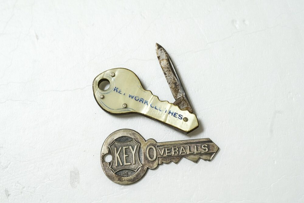 アイコンが鍵になったブランドだけにそれをモチーフにしたノベルティを展開。上は折り畳み式ナイフ。