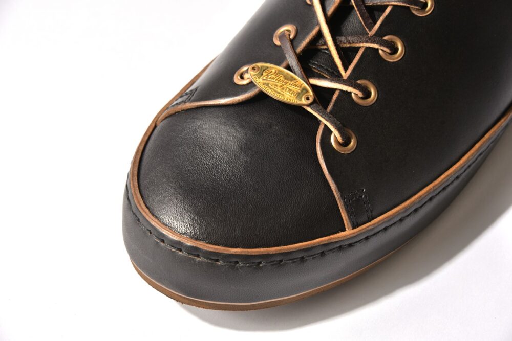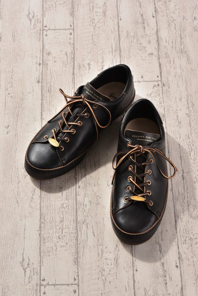 「ブーツ好きにも納得してもらえるスニーカーを作りたかった」と代表の徳永さんが話すように、堅牢なブーツ作りで定評のあるローダブならではのしっかりした作りとなっている。自称「レザーアスリート」の俺がこのスニーカーに初めて足を入れた時、「あぁ、こういうことか」と思ったね。エンジニアに比べ履きやすく、足が自然と前に行く感じ。なにせ、足首が自由に動くのだ(当たり前か)。
