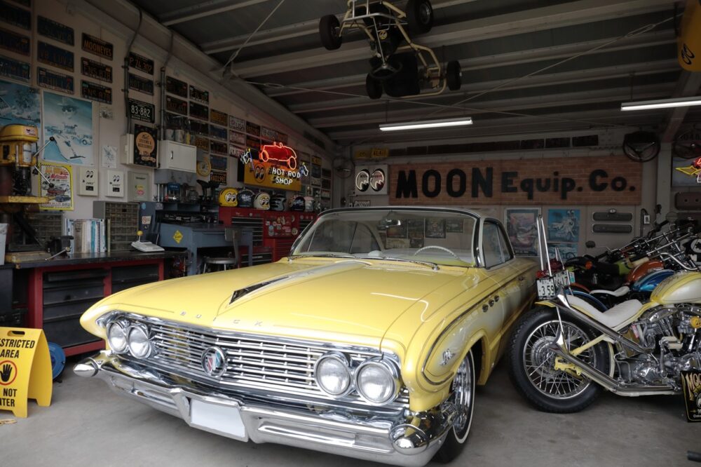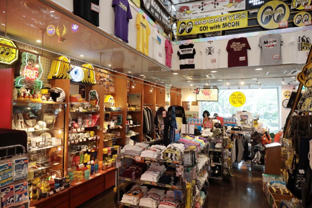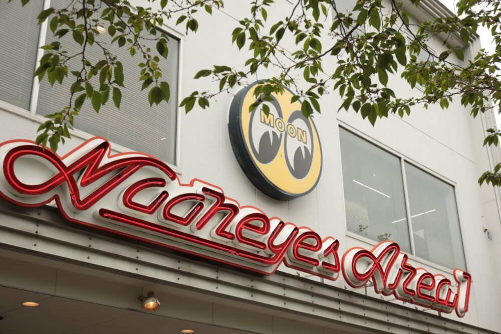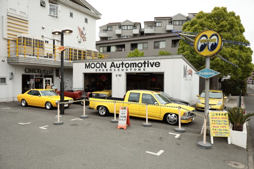 ムーン・オブ・ジャパンができたのは1986年。その後1992年から代表のShige菅沼さんがアメリカのムーンアイズ本体を受け継ぎ、この歴史あるメーカーのカルチャーを発信していくことに。そして、その本拠地となるのが本牧にあるムーンアイズ・エリア1であり、モノを売るだけでなく、“カーフィーショップ”やガレージを併設し、南カリフォルニアのライフスタイルを提案し続けている。