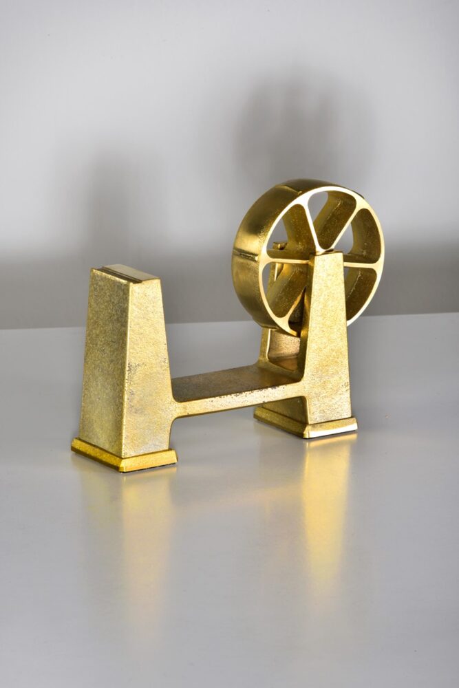 そして何よりも、デザインがステキすぎる。すっきりした「H」型ボディの底部分には手を差し込めるくらいの隙間があり、ここを握って持ち運びができるという実用性の高さ。ここに同じく真鍮製のローラーを設置すれば、そのカタチは完成する。このバランスのよさと美しいたたずまい(どこどなくライオンに見えるのは私だけだろうか)。