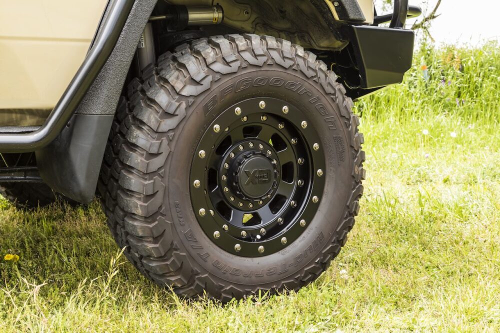ホイールはKMC XD137の17インチで、295/70サイズのマッドテレーンタイヤを組み合わせる。
