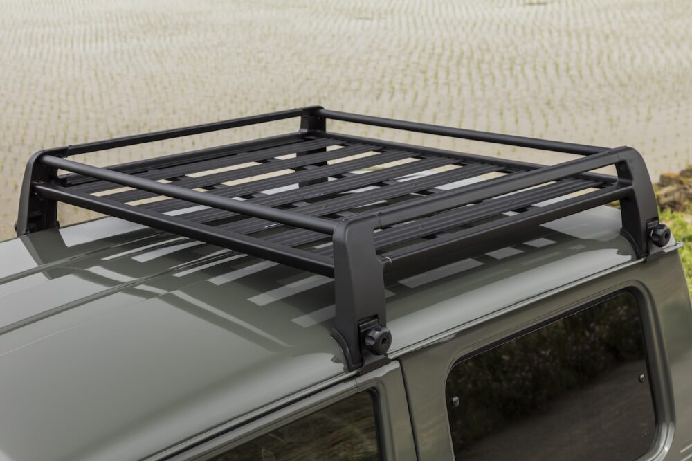ヘビーデューティなイメージも演出してくれるマットブラックカラーのルーフラック。大量の荷物を運搬する時など、室内だけでは積載オーバーしてしまう時に使用する。