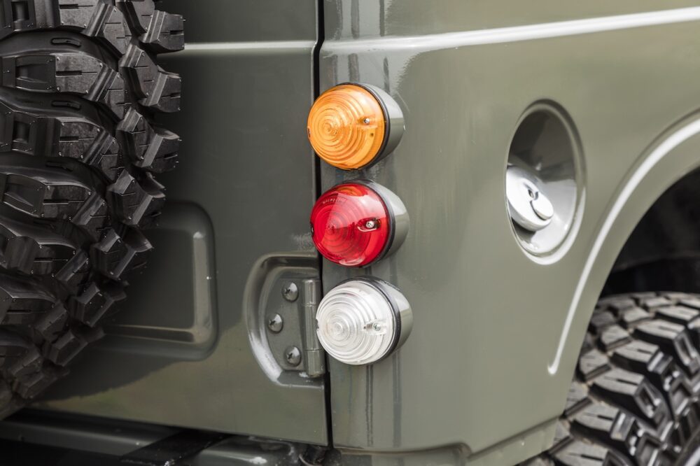 オールド・ディフェンダーのリアを彷彿とさせるマッドモービル製の3連テールランプ。こちらは取り付け加工が必要なため、装着希望の人はマッドモービルに問い合わせを。