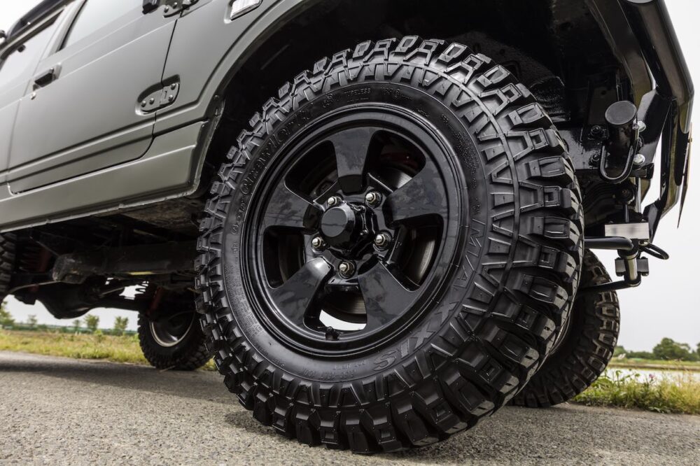 マッドモービルの定番メニューが3インチリフトアップとマキシスのクリーピークローラー&黒ホイールの組み合わせ。これだけで最新のアメリカンSUVに負けないルックスに。