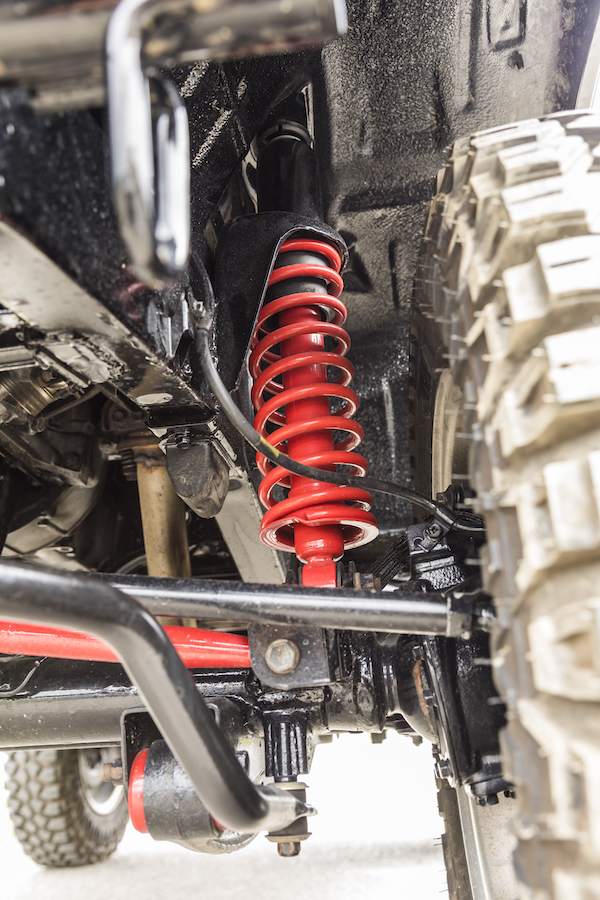 コイルスプリングやショック、ラテラルロッド、そしてブレーキホースといった足回りのパーツはすべて新品が装着されている。