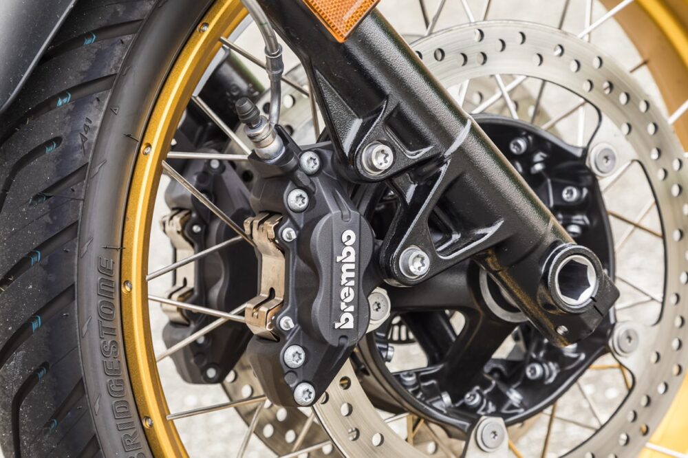 前後ブレンボ製のキャリパーを備えたブレーキを採用。フロントは制動力の高いダブルキャリパーを装備している。